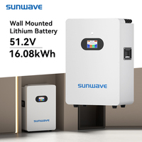 SUNWAVE بطارية ليثيوم شمسية مثبتة على الحائط 16 كيلو واط بالساعة 48 فولت بطارية LiFePO4 بطاريات منزلية مع نظام BMS مدمج للألواح الشمسية
